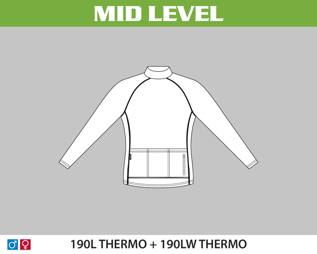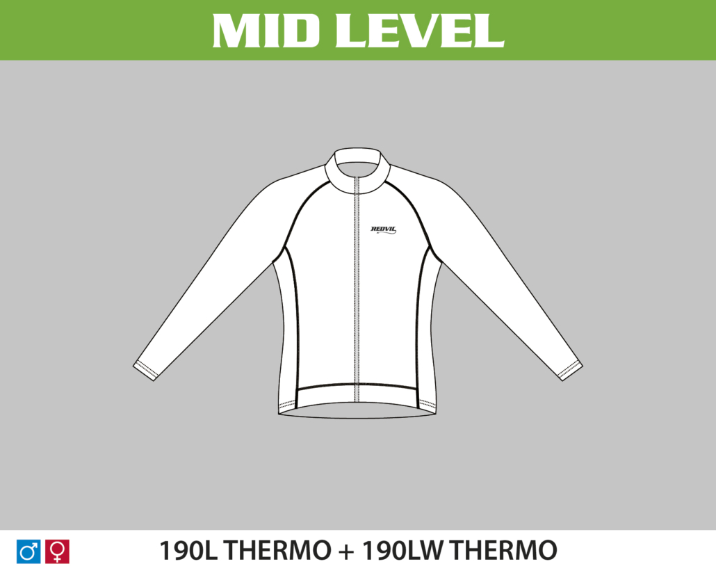- kann auch mit dünnem Trikotmaterial produziert werden. Modellnummer Männer=190L thin + Damen=190WL thin
