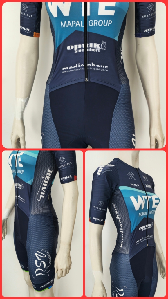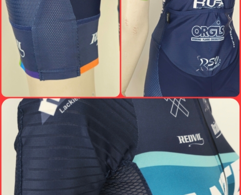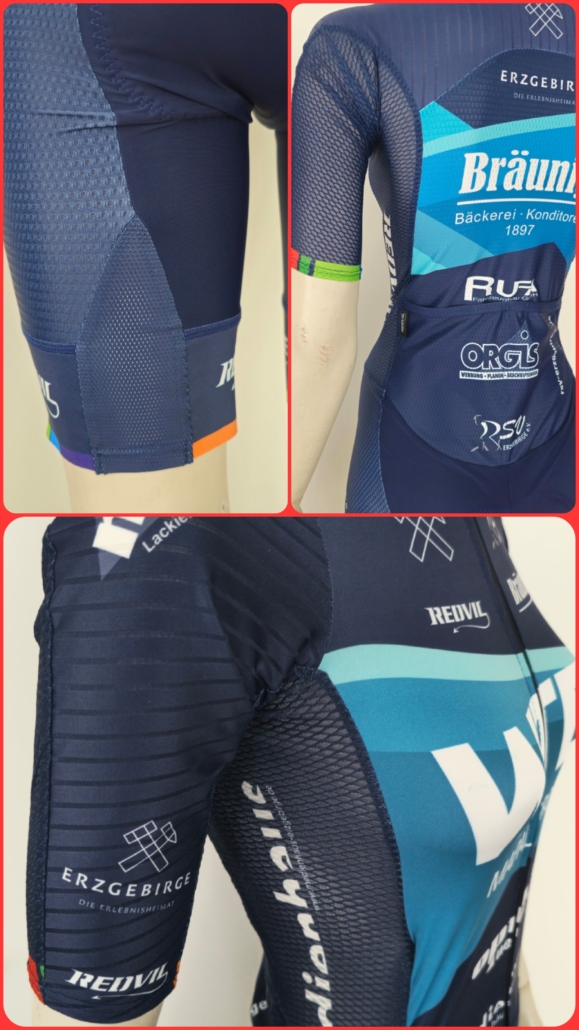 Material: italienisches Lycra SIRIO 200g, PA 80% – EA 20% / DEDALO 180g – PL 82% – EA 18% / Polypower PRO 110g – PL 86% – EA 14% /Lycra Power 200 g -78 Polyamid + 22% Elasthan / Shield Endurance 240g – 80% Polyester + 20% Elasthan, Netz